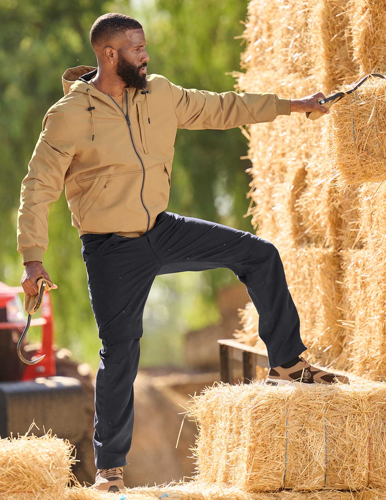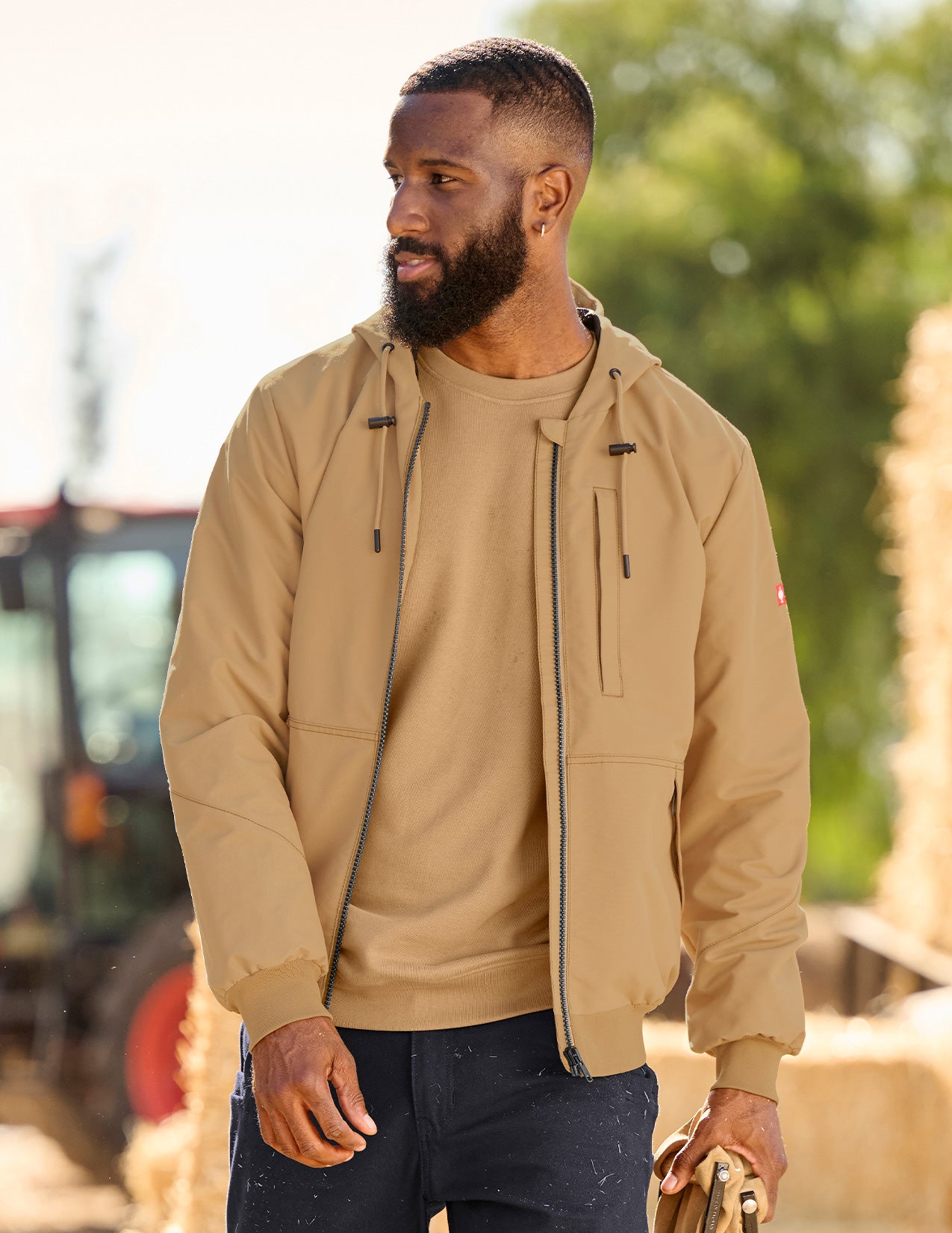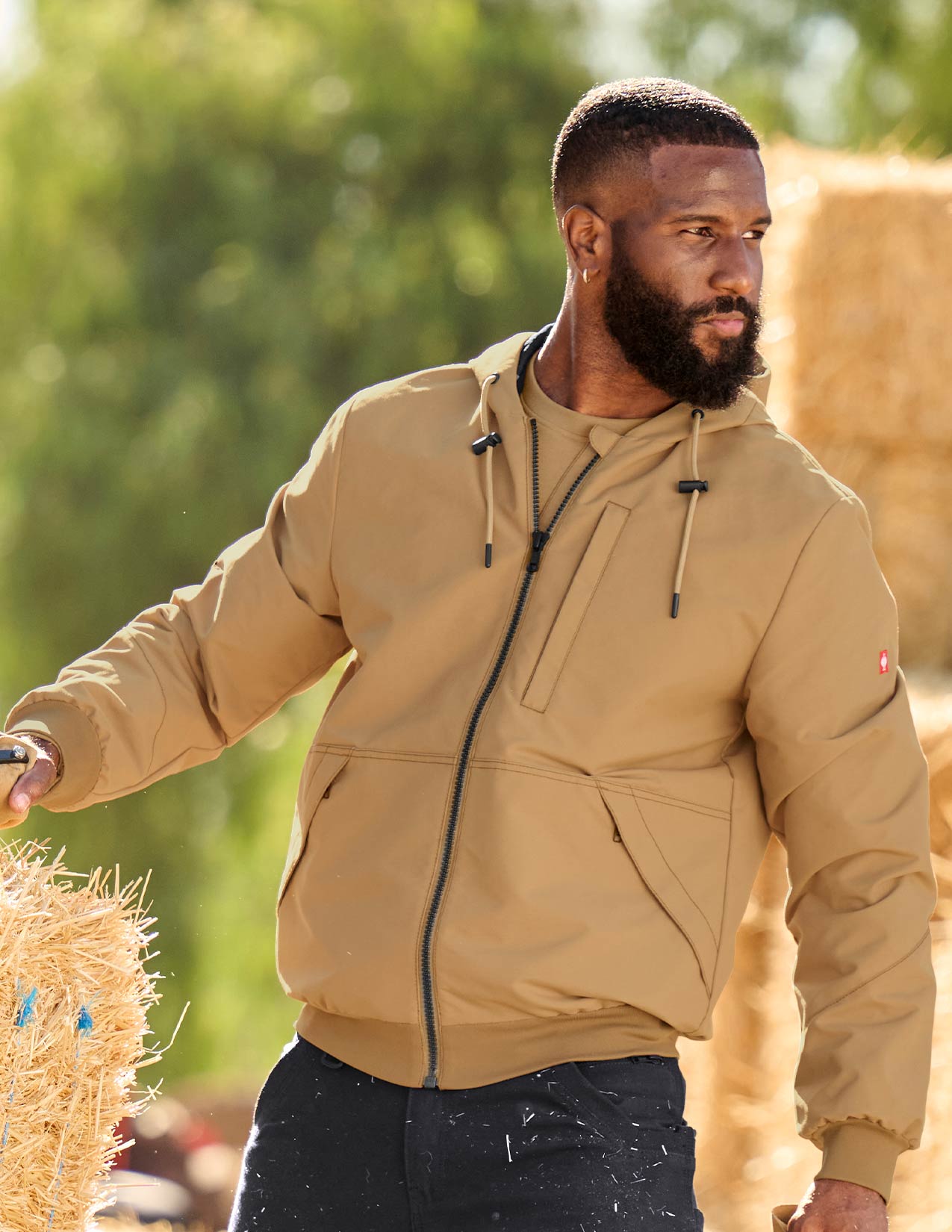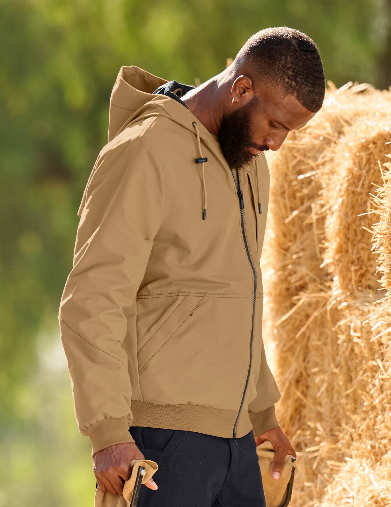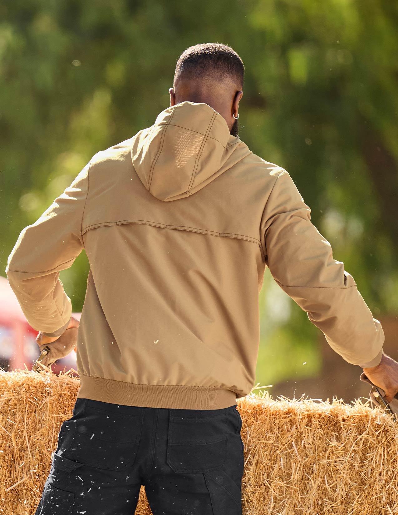 This lightweight jacket has heavyweight ambition. The inside made of a light mesh, while the outer shell has a breathable, water-repellent membrane. On windy days, you can pull up the lined hood. And when the temperature rises in the afternoon, the vents on the back are there to keep you from overheating.