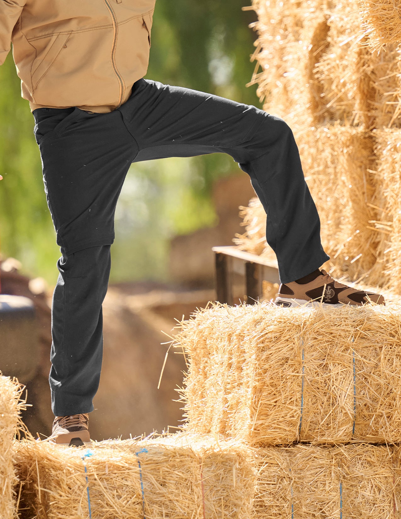 - Knee pad pockets with reinforced fabric extending to the hem, secured with a hook-and-loop flap closure