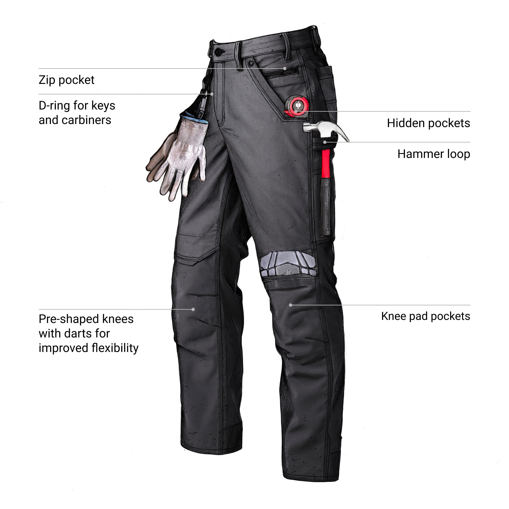No more holes. No more frayed seams. These pocket protected pants are perfect for those who keep their gear close at hand. Designed for durability, these work pants feature a relaxed fit, triple-stitched main seams, and pre-shaped knee darts with knee pad pockets for added protection. The key to these pants is in the pockets — each one is reinforced with 100% polyamide, ensuring they withstand the toughest tasks.