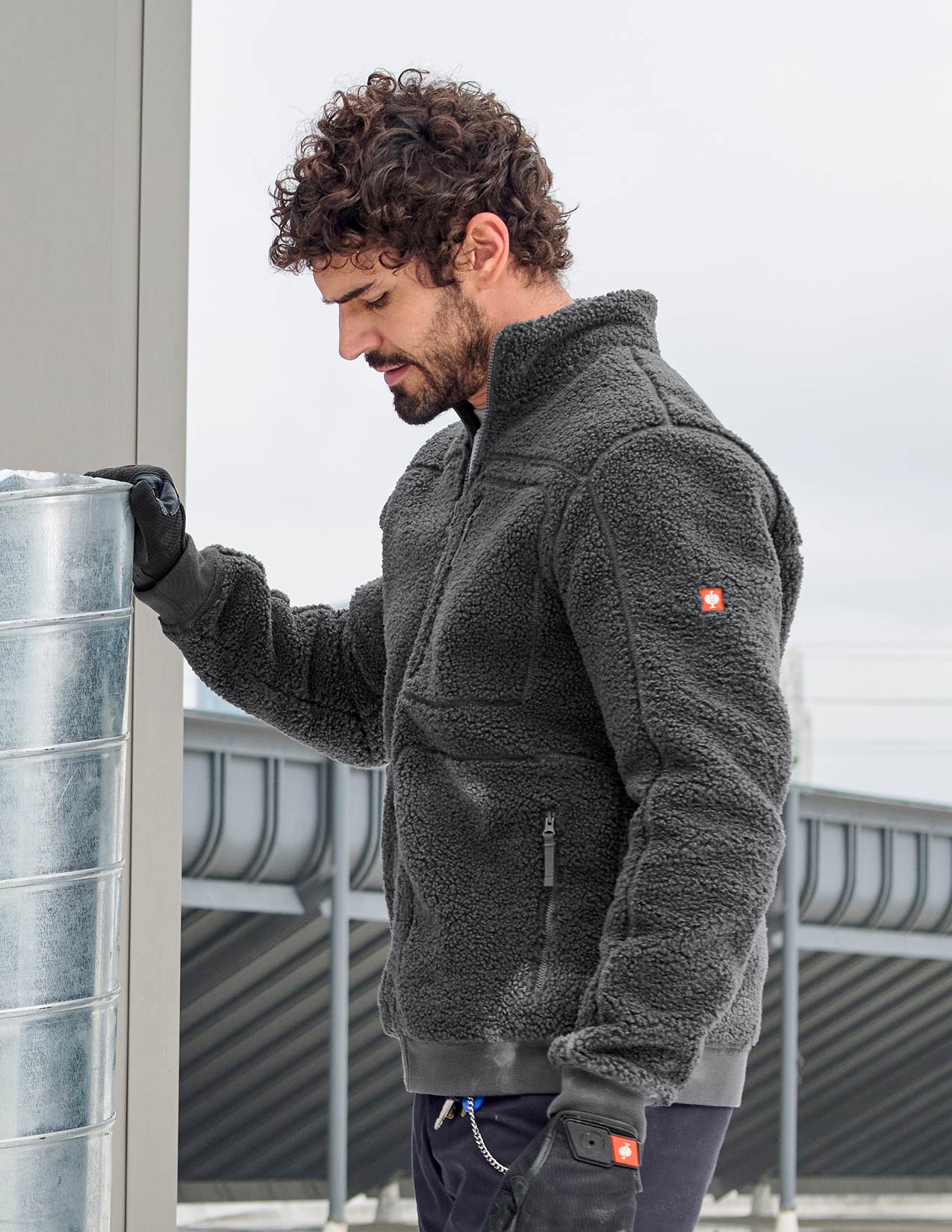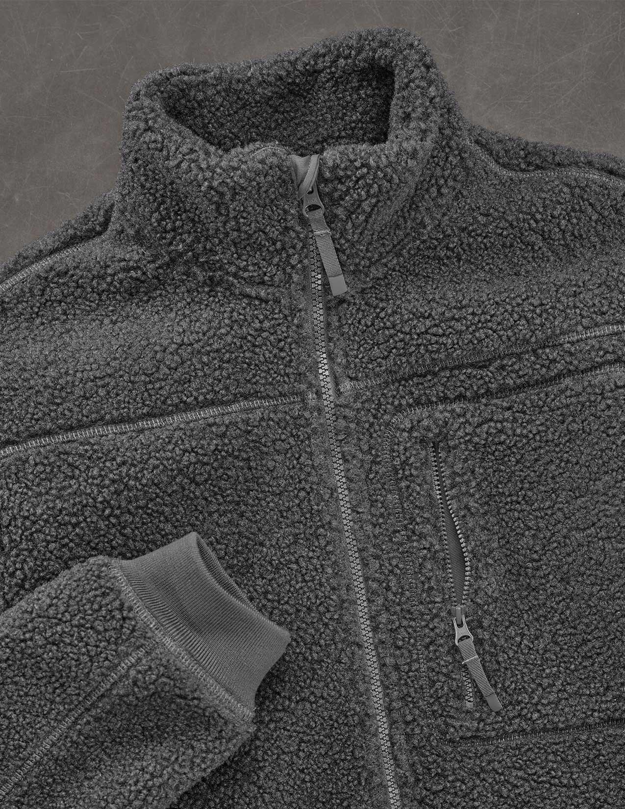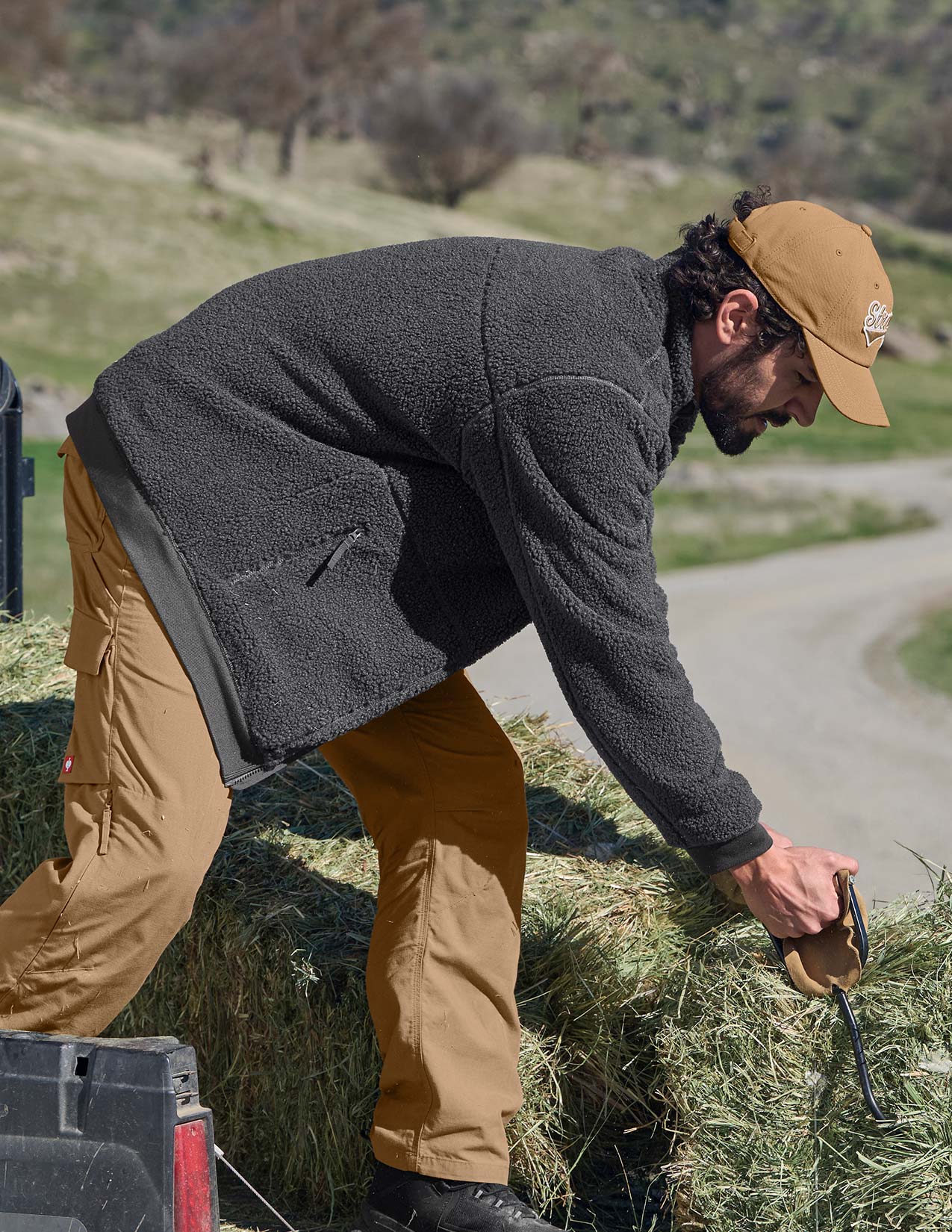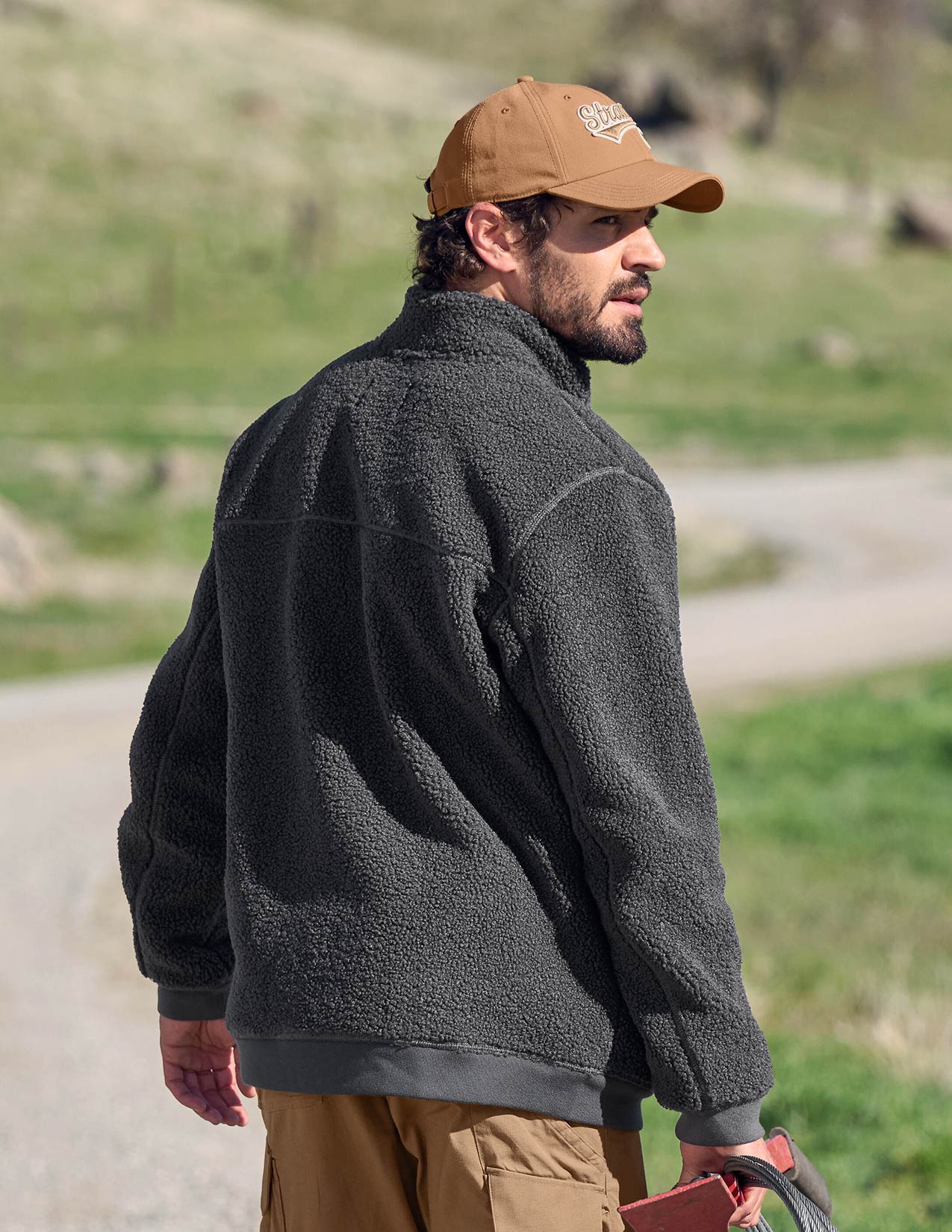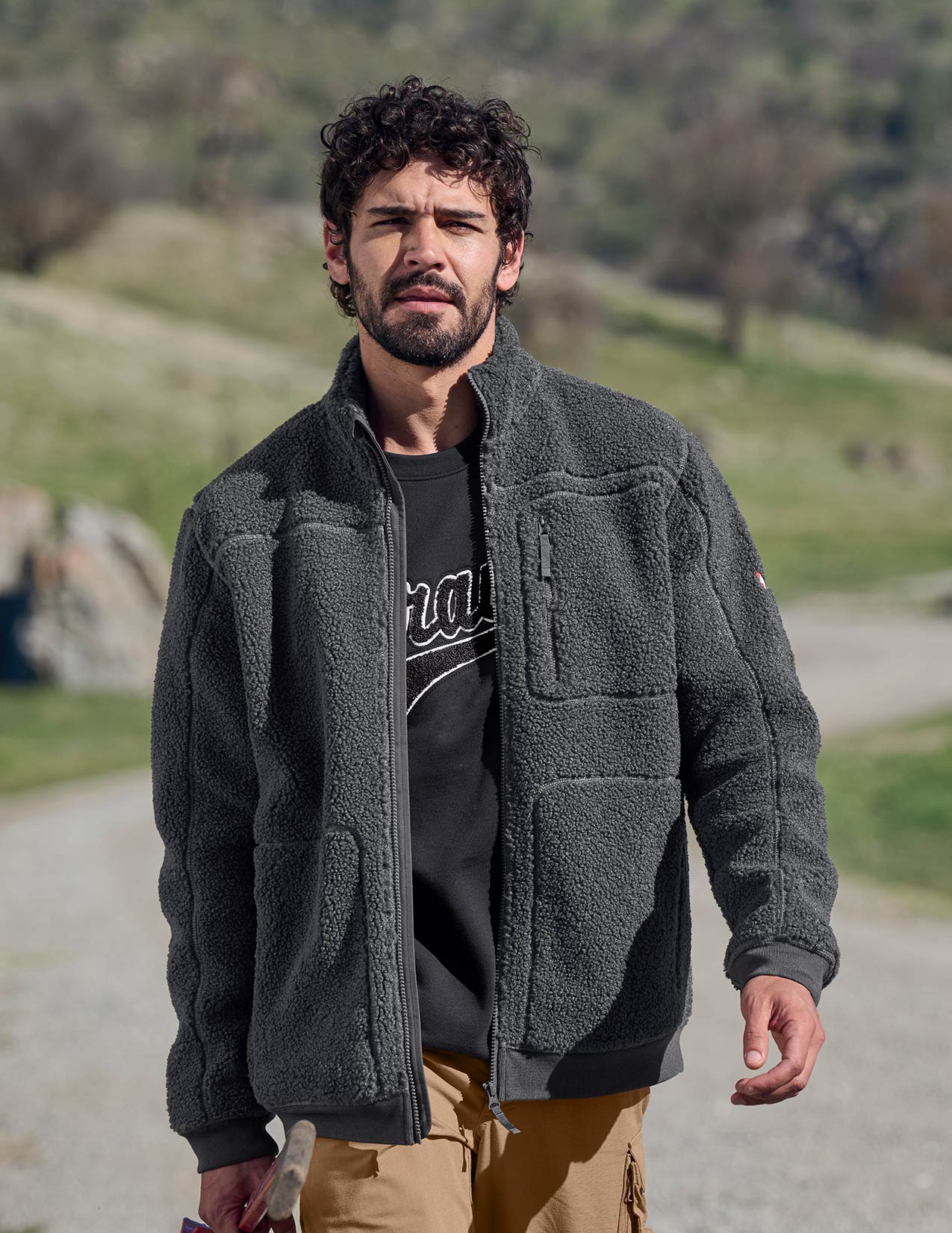 Warmth and work-ready utility combine in this Sherpa fleece jacket. The classic fluffy exterior combines with a warm fleece interior to handle chilly days. The relaxed, baggy fit allows you to layer up while wearing the jacket. Of course, details like decorate flatlock seams and smooth linings add a stylish touch.