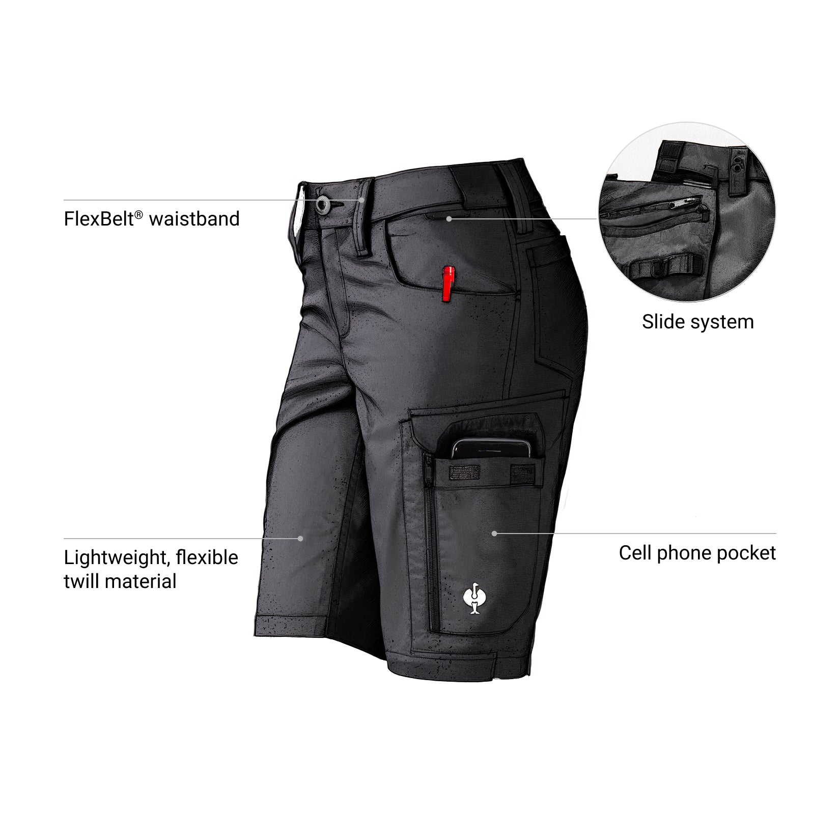 High on durability and low on weight, the Shorts e.s.concrete light combine natural cotton, stretch material, and polyamide fibers to resist wear while feeling fantastic. The Flexbelt® waistband adds to the comfort, while multi-purpose, multi-closure pockets and loops provide space for your tools and phone. These twill fabric shorts are the ultra-lightweight, ultra-durable way to tackle your workload.