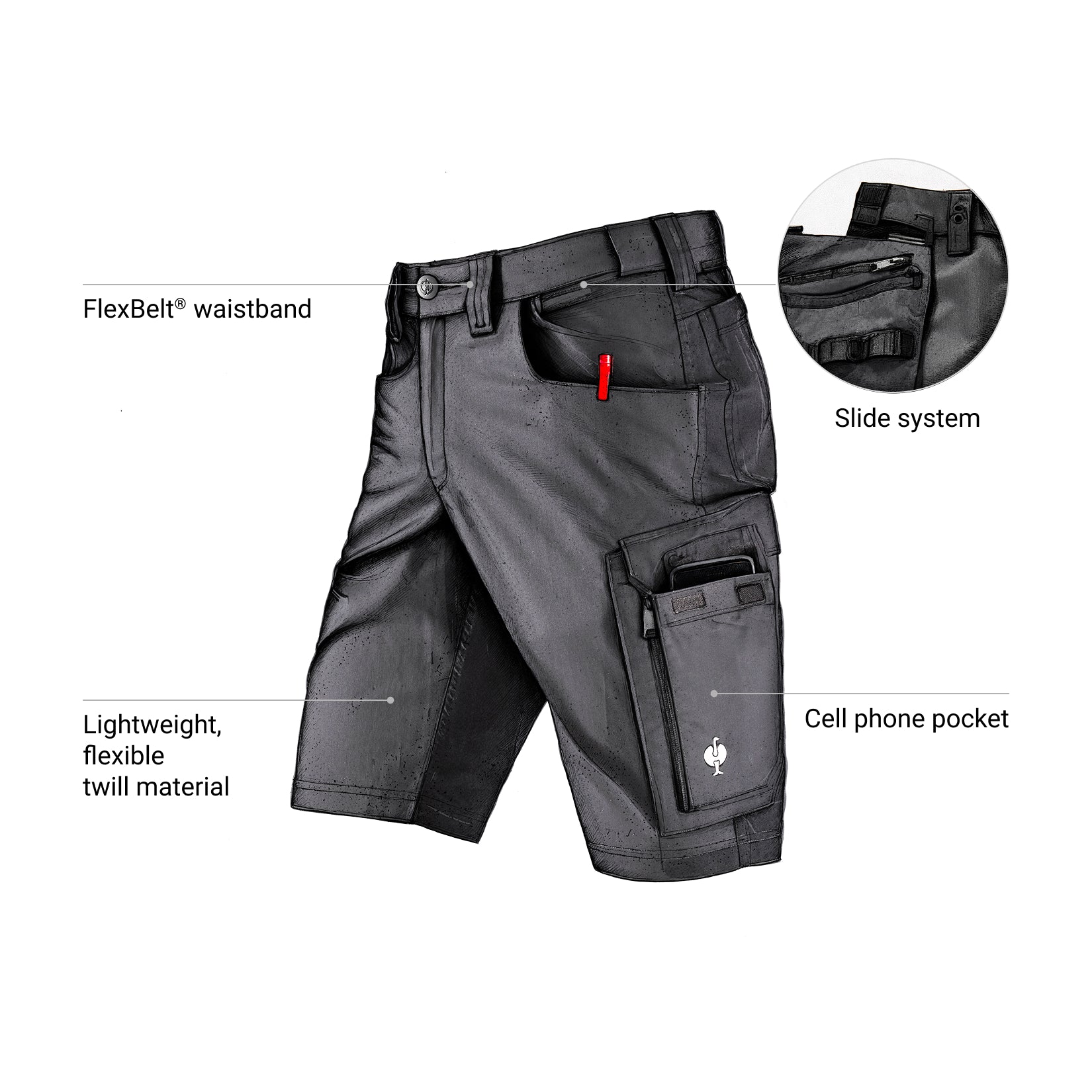 High on durability and low on weight, the Shorts e.s.concrete light combine natural cotton, stretch material, and polyamide fibers to resist wear while feeling fantastic. The Flexbelt® waistband adds to the comfort, while multi-purpose, multi-closure pockets and loops provide space for your tools and phone. These twill fabric shorts are the ultra-lightweight, ultra-durable way to tackle your workload.