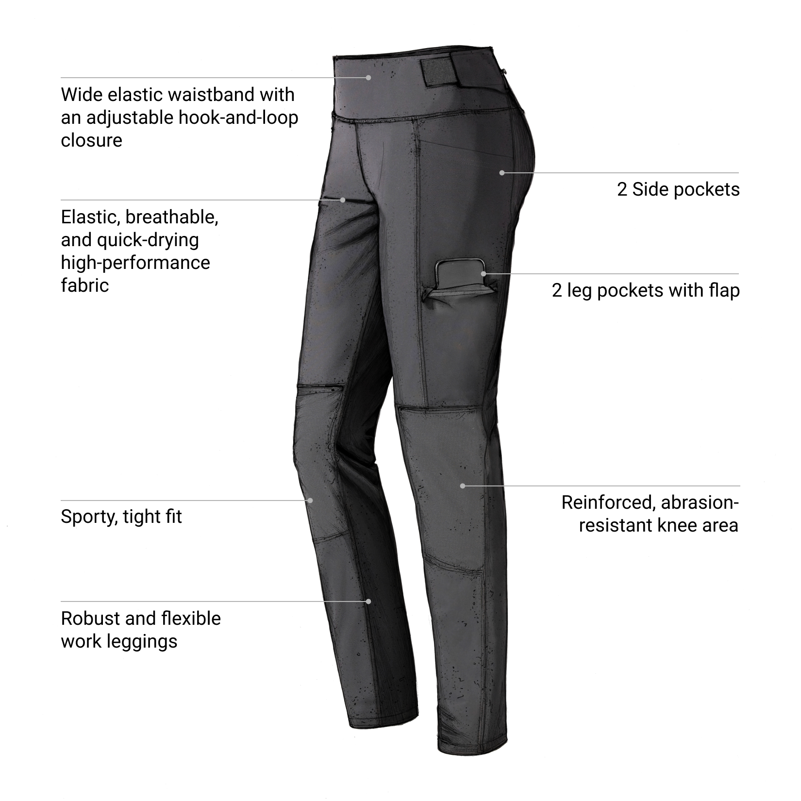 - Robust and flexible work leggings
