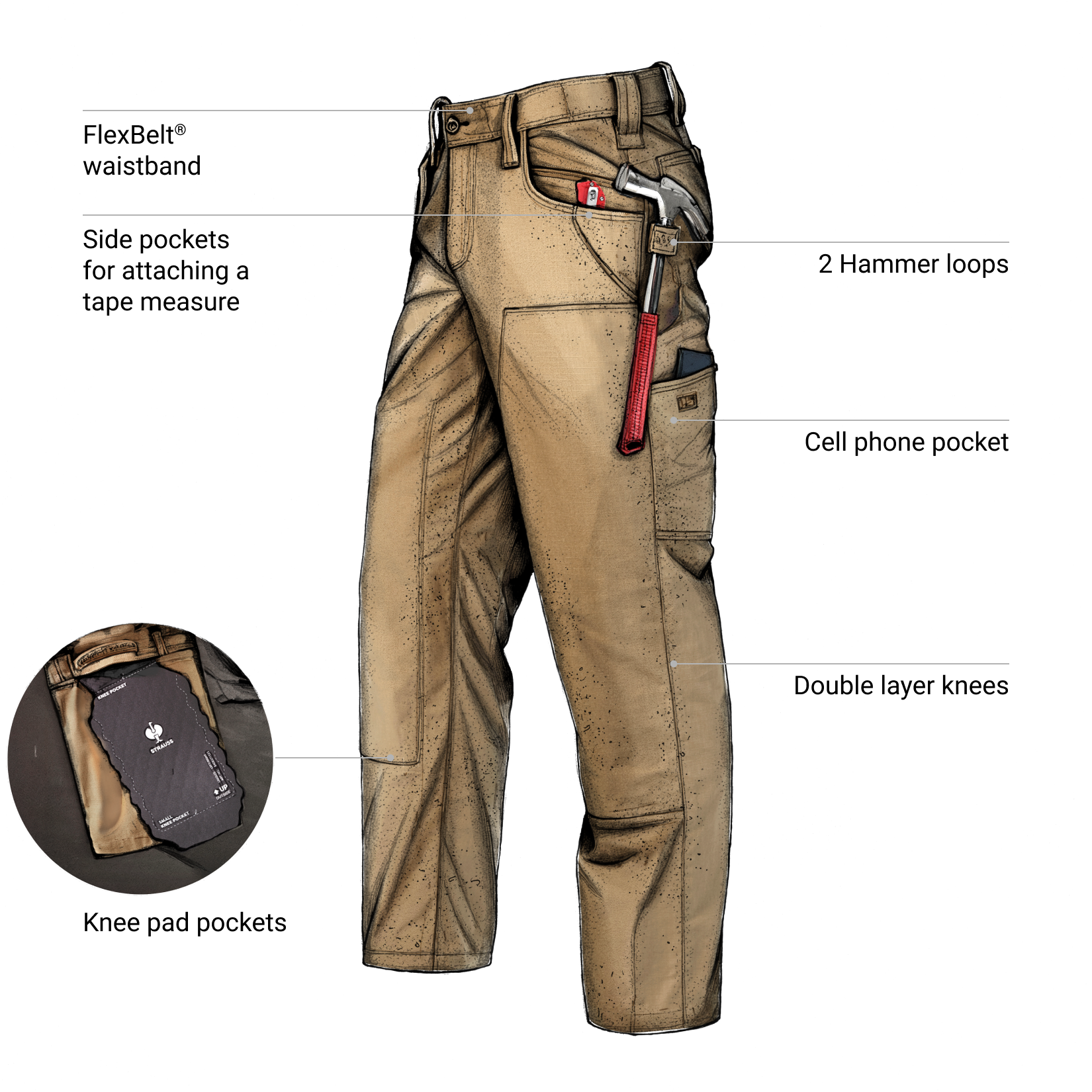 These double front pants are cut to a relaxed, looser fit and made from a lightweight ripstop material that's surprisingly tough. The combination of breathable fabric and ease of movement makes them ideal for warm-weather work. They feature plenty of pocket storage and knee-pad pockets designed to accept STRAUSS knee pads – perfect for jobs where you must occasionally work from the floor.