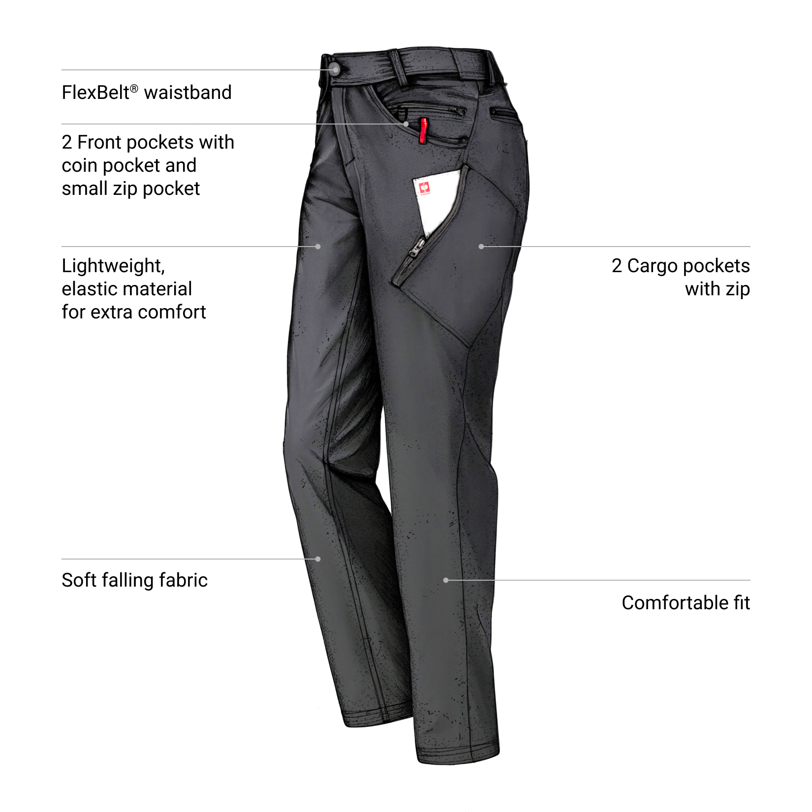 - comfortable fit with tapered leg
