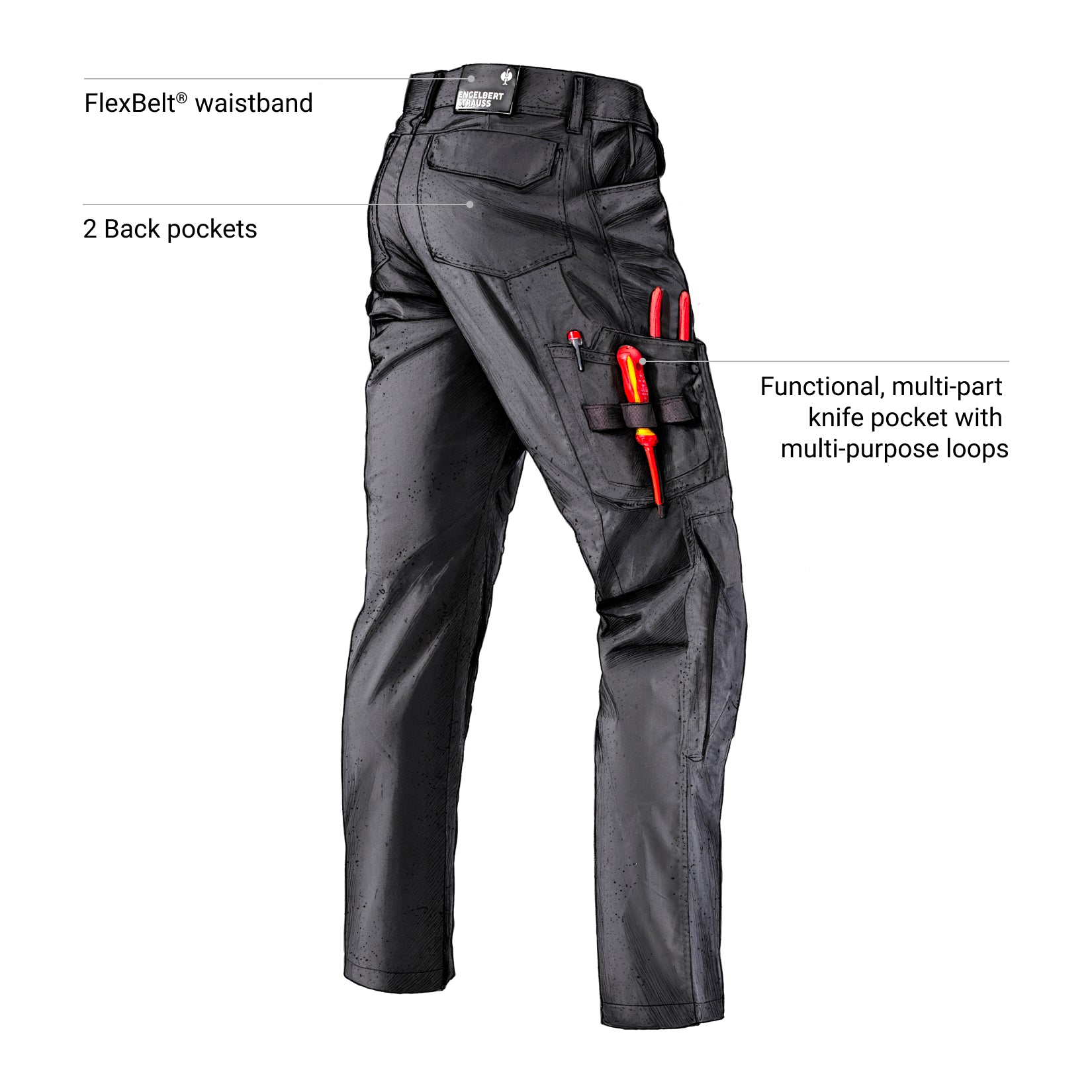 - Perfect ergonomics: Top-loading pocket that works with all knee pads for our STRAUSS work pants. A protective flap covers the pocket opening. This prevents the knee pads from slipping and from dust and debris getting in.